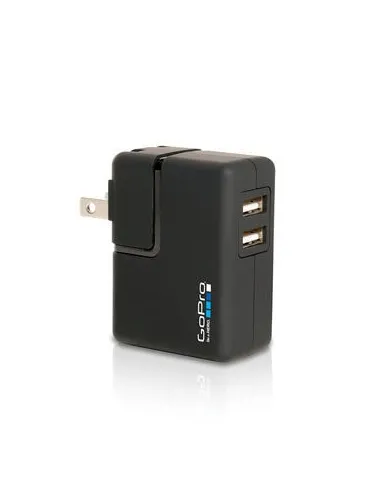 Carga dos cámaras GoPro simultáneamente, en cualquier toma de corriente del mundo. El cargador de pared GoPro permite cargar las baterías GoPro el doble de rápido que un cable USB y un ordenador y, además, puedes cargarlas y grabar al mismo tiempo. Incluye enchufes de CA intercambiables para tomas de corriente de pared de EE. UU, UK, UE y AU.