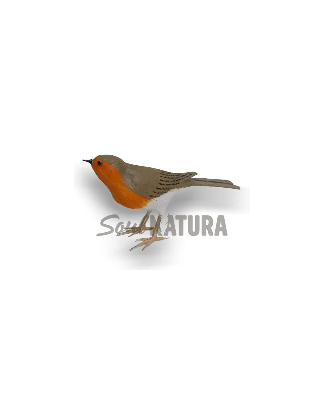 Réplica de un petirrojo (Erithacus rubecula) a tamaño natural con un acabado realista. Está fabricado a mano con pita (agave).