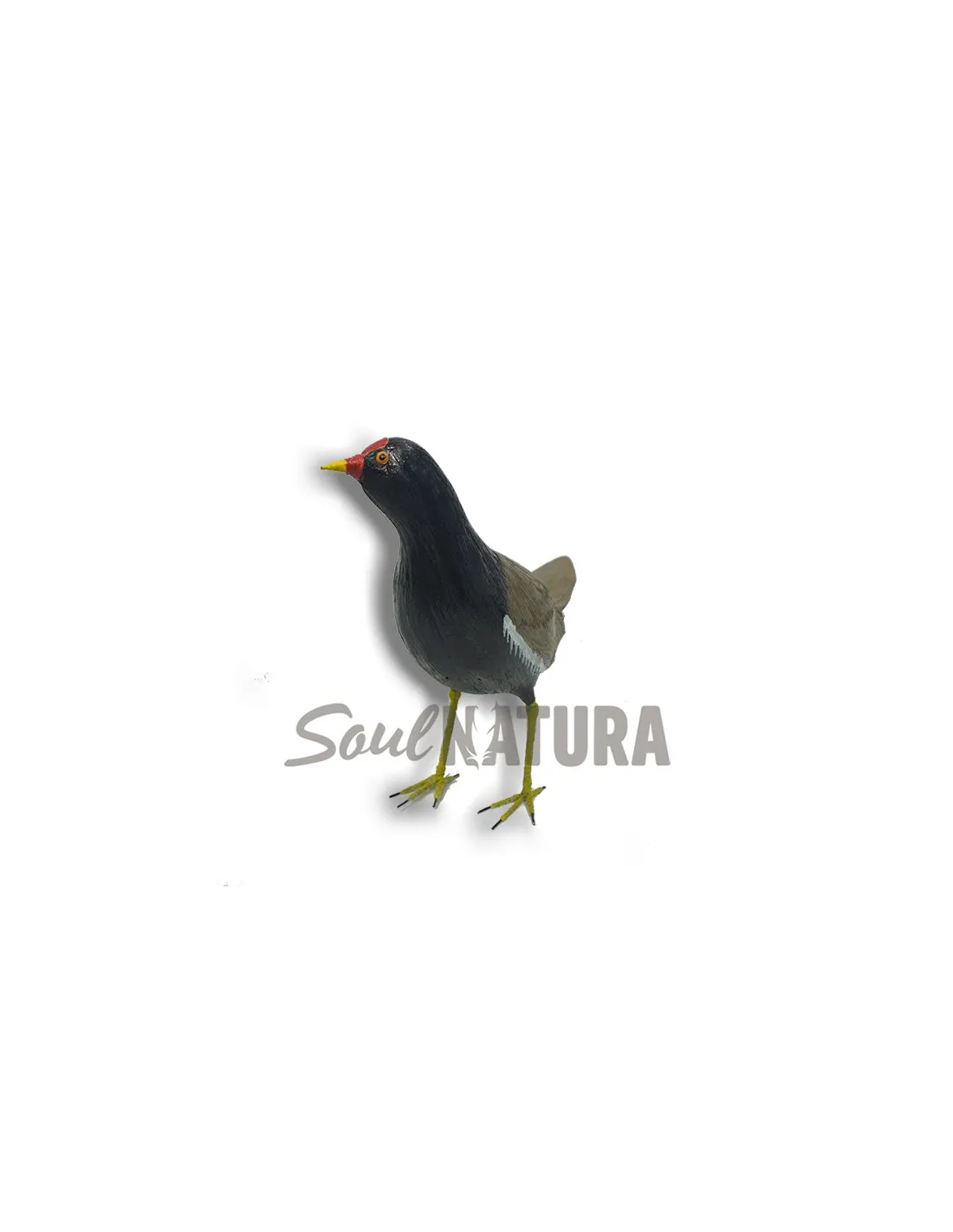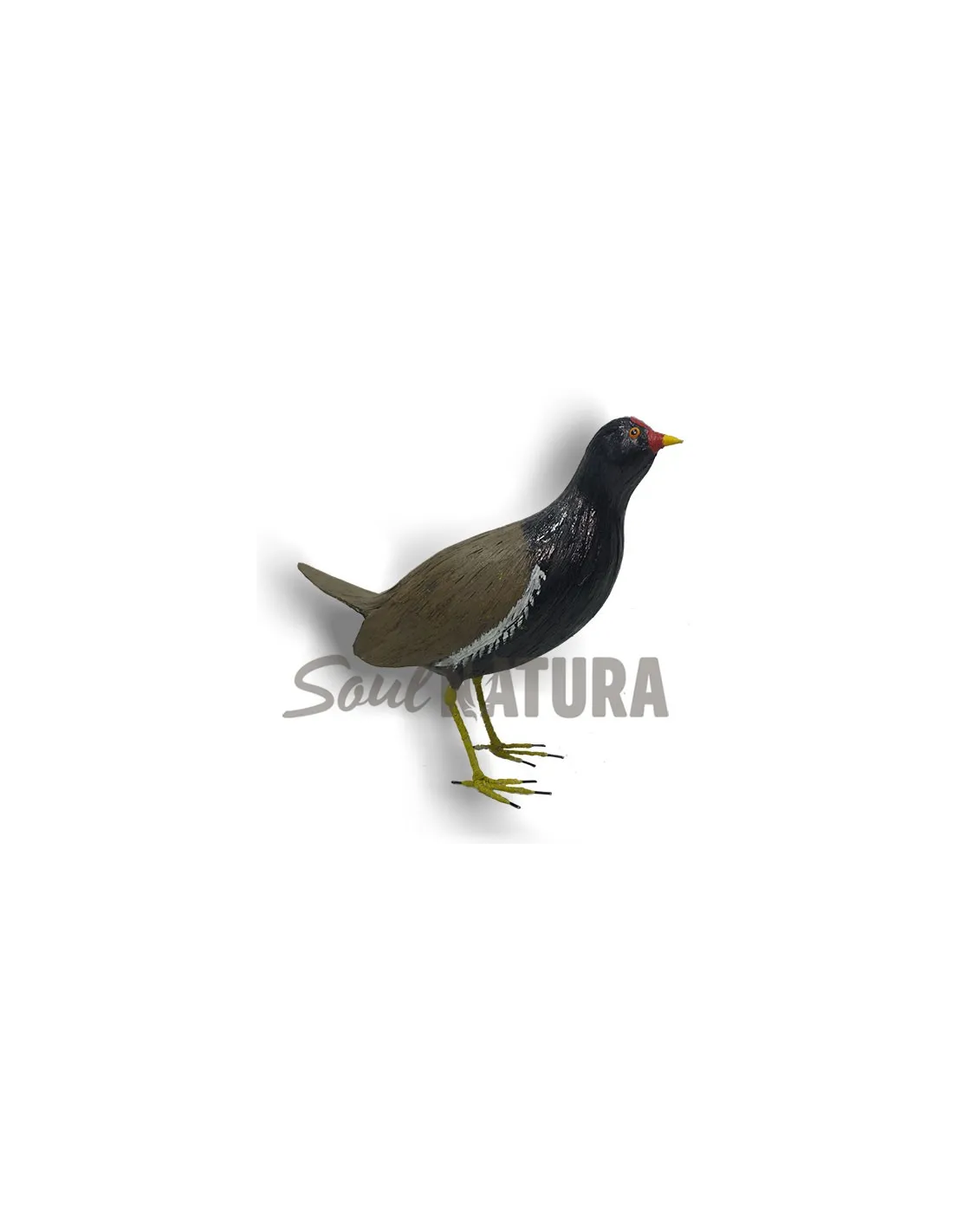 Réplica de una Gallineta, un ave acuática muy numerosa en Eurosia y África. Está fabricada a mano con pita (agave) y pintada también artesanalmente y se trata de una reproducción a tamaño natural.