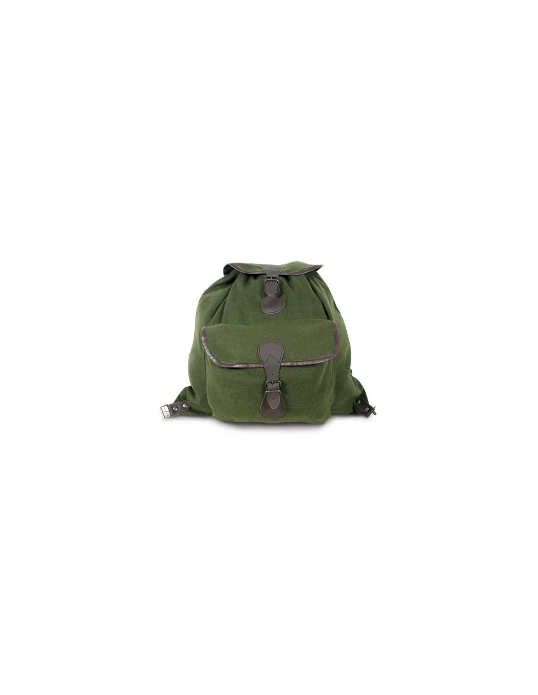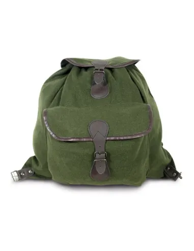 El compartimento principal tiene cierre de fuelle y esta mochila cuenta con un gran bolsillo delantero. Su forro interior es impermeable y los tirantes están acolchados y son regulables. Es de rápido desenganche y no tiene elementos metálicos que puedan producir ruido o arañar el equipo. Es de color verde oscuro y tiene acabados en cuero.