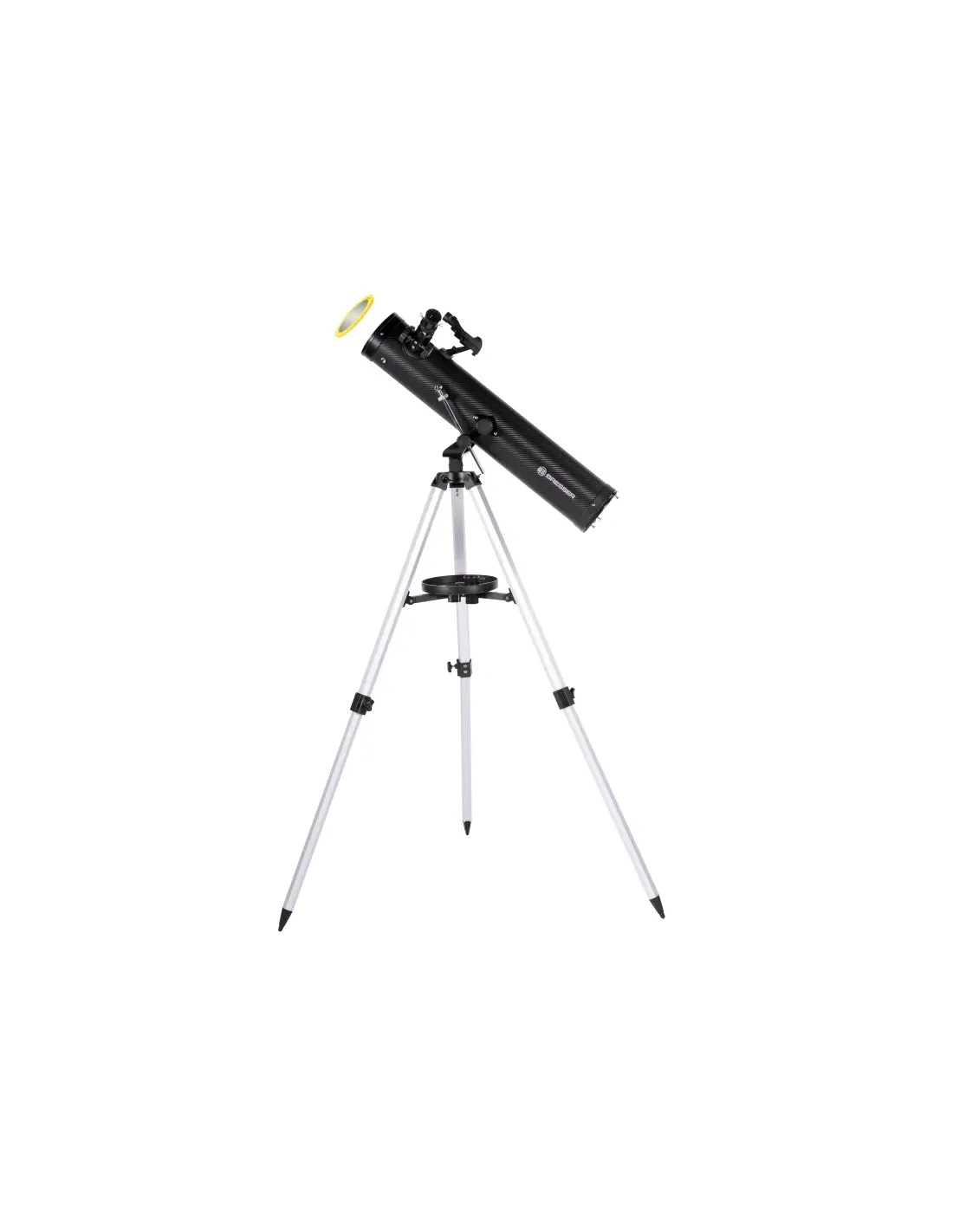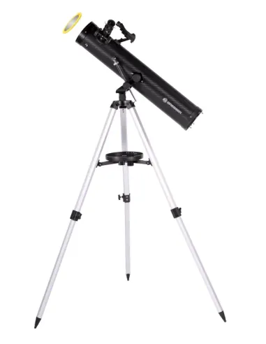 El BRESSER Venus 76/700 AZ es un telescopio reflector ideal para quienes inician su viaje en la astronomía. Con una apertura de 76 mm y una distancia focal de 700 mm, este telescopio proporciona una buena relación calidad-precio, permitiendo observar la Luna, planetas como Júpiter y Saturno, y objetos de cielo profundo.