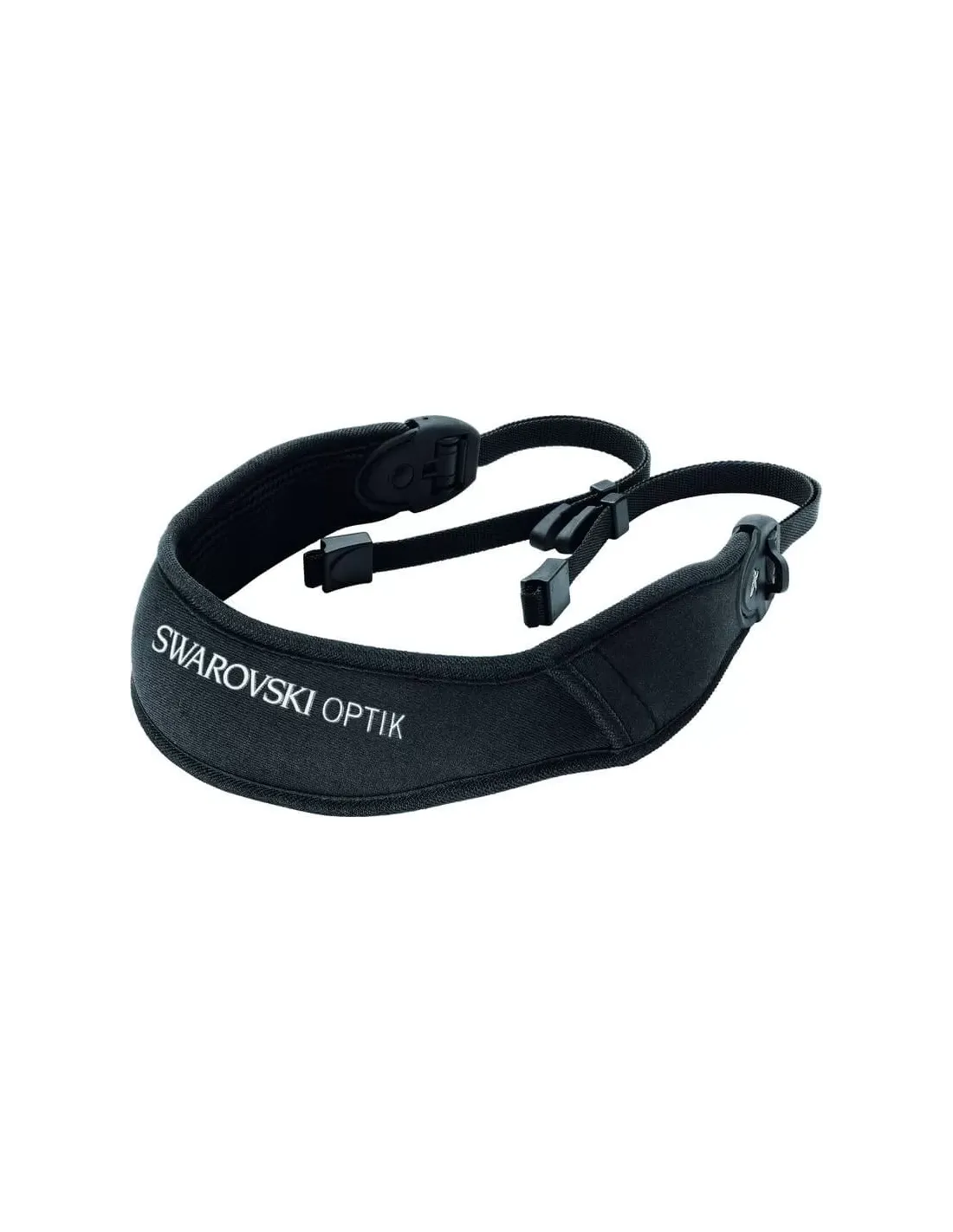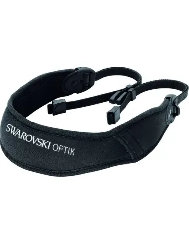 Está diseñada especialmente para los binoculares de las series EL y EL Range, usando el conector exclusivo (tipo bayoneta) de Swarovski. El bolsillo de neopreno interior, bastante suave, reduce el deslizamiento y mejora la comodidad sobre el hombro o cuello. Su parte ancha (parte que descansa sobre el hombro/cuello) ofrece buen soporte, y los elementos de ajuste (hebillas, conectores) están fabricados con materiales robustos para uso frecuente al aire libre.
