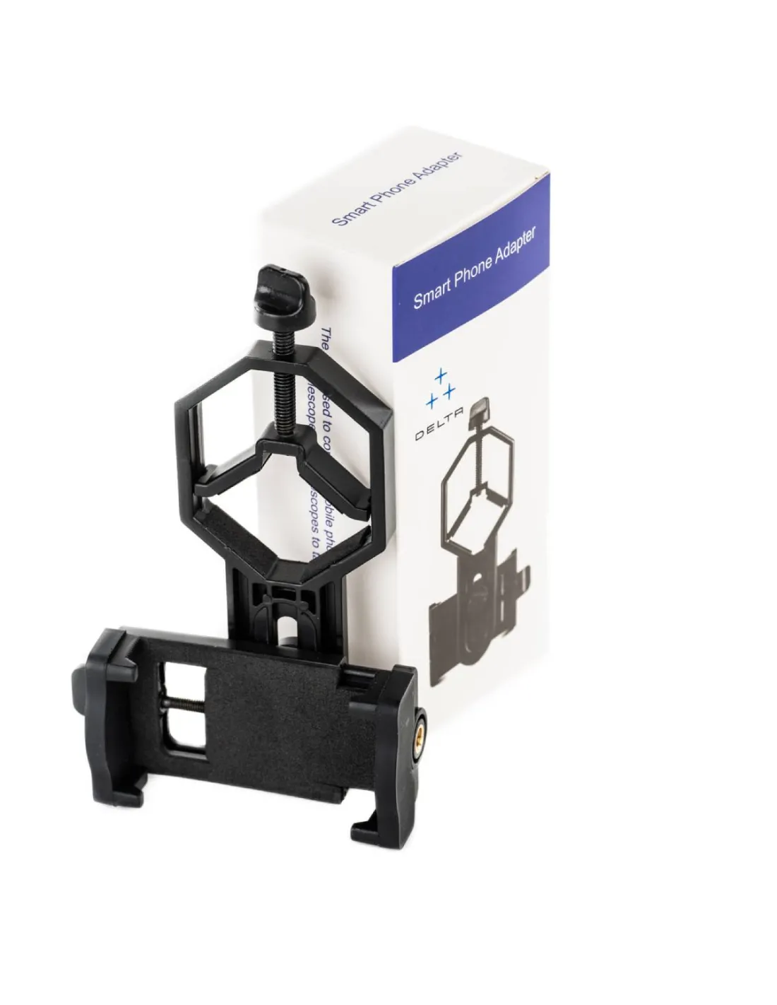 El adaptador universal de la marca DELTA para distintos tipos de óptica. Permite la grabación con smartphone a través de diferentes ópticas.