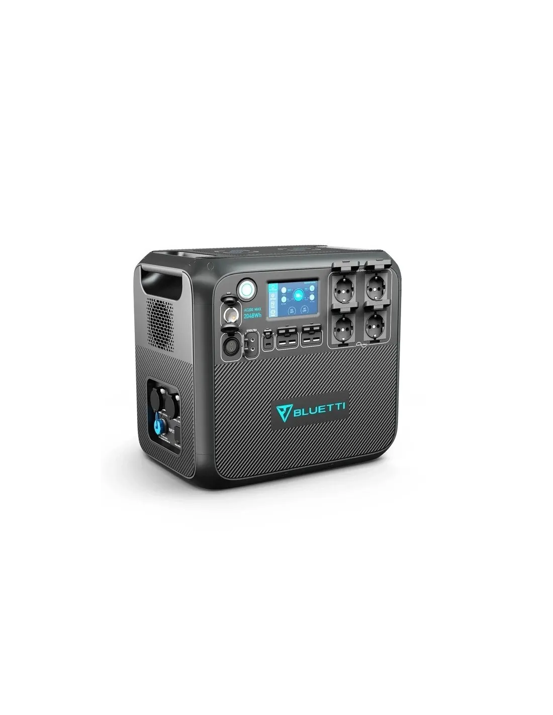 Con sus diversas opciones de carga, la estación eléctrica AC200MAX de Bluetti ofrece un alto grado de flexibilidad y está rápidamente preparada para su uso en diferentes situaciones. Las tres tomas de CA proporcionan una onda sinusoidal pura con una potencia nominal total de 2200 W (potencia máxima de 4400 W).