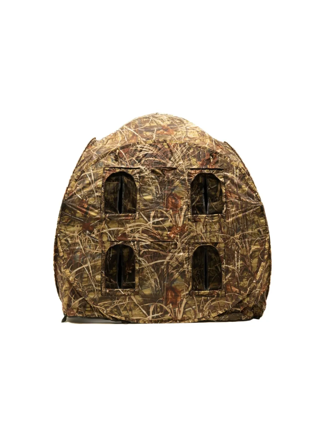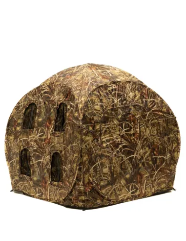 El photo hide Aquila Mark II Caña es una tienda de campaña diseñada para fotógrafos de naturaleza y vida salvaje, ideal para dos personas. Destaca por ofrecer más espacio, comodidad y ventanas fotográficas en comparación con versiones más pequeñas. Es fácil de transportar, se monta en un minuto y tiene un diseño de camuflaje eficaz.