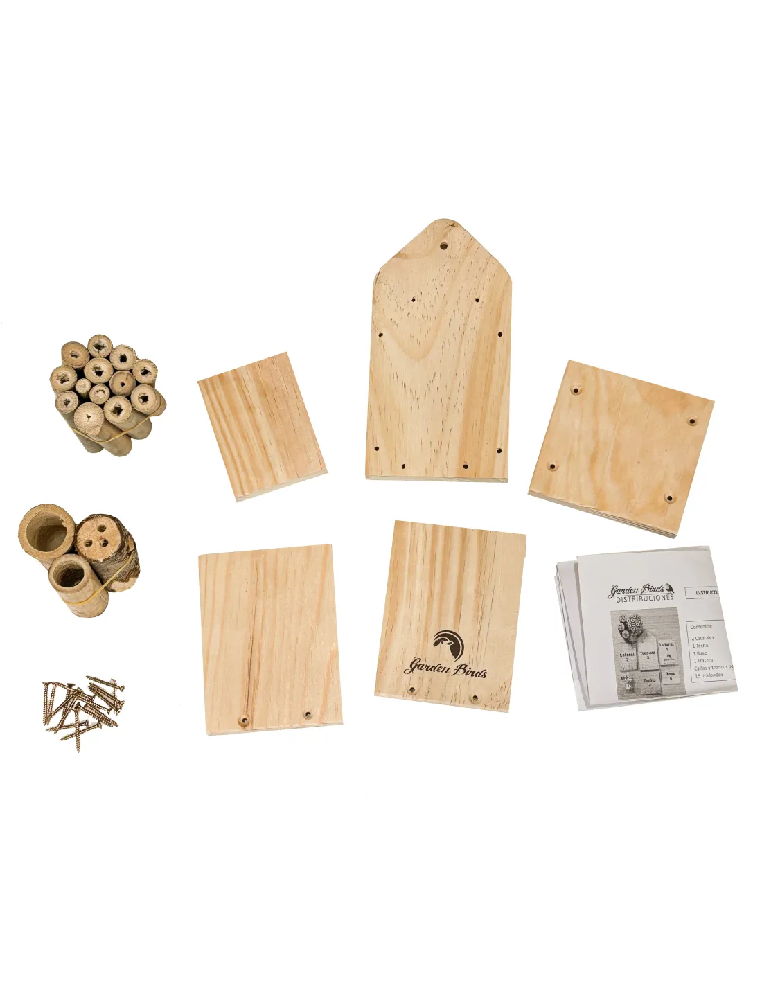 Refugio para abejas solitarias en formato kit, para que lo construyas tu mismo o en familia.