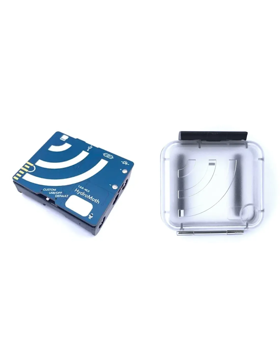 La unidad HydroMoth se basa en la misma electrónica que el reconocido dispositivo terrestre AudioMoth, pero ha sido modificada específicamente para su uso bajo el agua: dispone de LEDs recolocados para una mejor visibilidad dentro de la carcasa, un oscilador MEMS de 32,768 kHz mejorado para reducir la deriva del reloj, y un interruptor de paleta magnético integrado que permite activar o detener la grabación sin abrir la carcasa