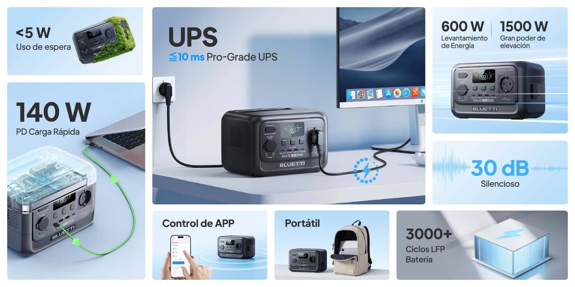 Nuestro nuevo dispositivo, portátil y liviano, cabe perfectamente en tu mochila. Con una capacidad de elevación de 600 W y carga turbo rápida de 140 W, se carga hasta un 80% en solo 45 minutos. Es seguro, duradero y se controla fácilmente desde tu smartphone con una aplicación inteligente. Experimenta la combinación perfecta de portabilidad y potencia.