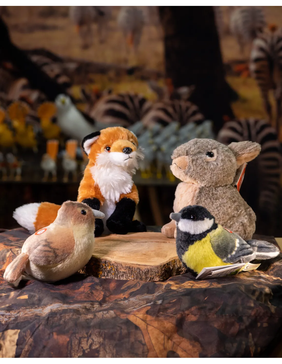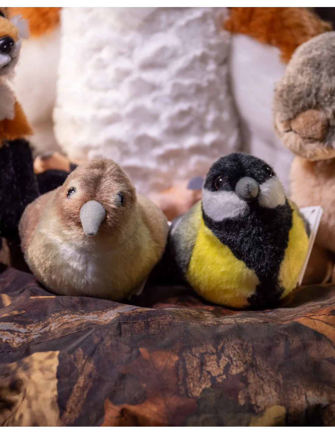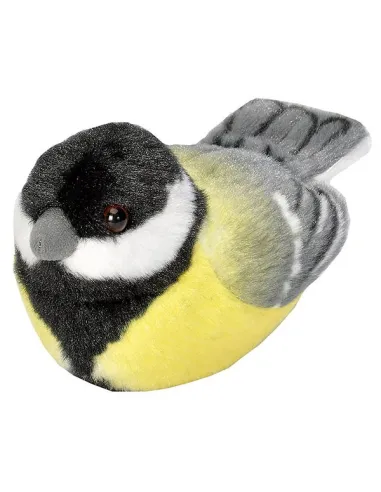 Peluche de un carbonero con canto real. Además de ser un peluche de tacto acariciable reproduce el sonido del pájaro.