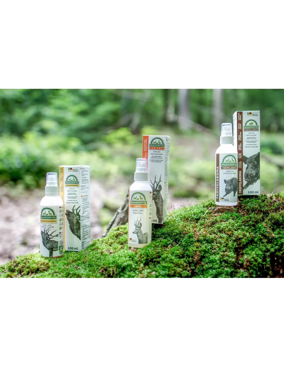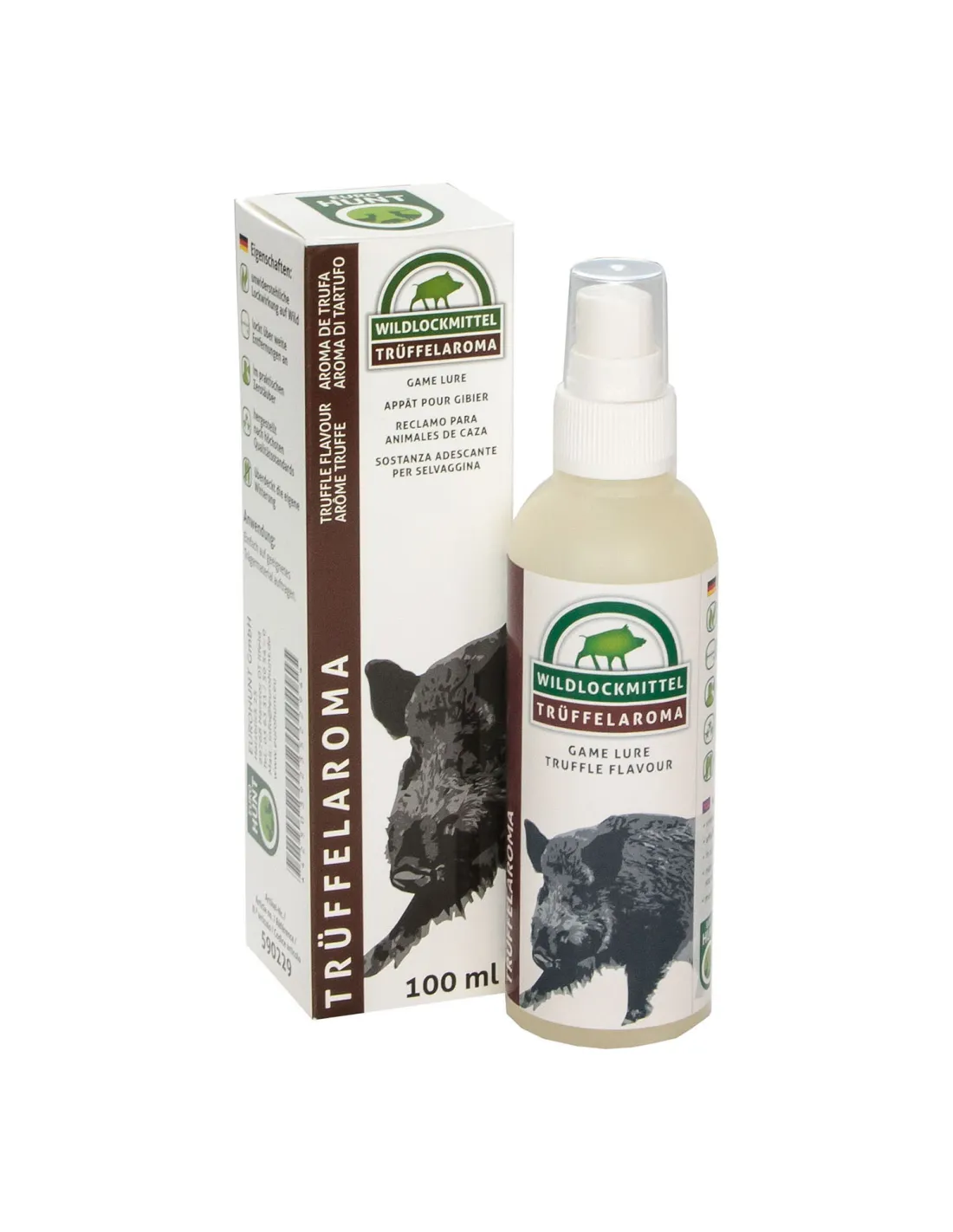 El spray de trufa es un atrayente diseñado para atraer eficazmente a diversas especies de fauna silvestre, especialmente jabalíes, gracias a su intenso y auténtico aroma a trufa. Este producto, presentado en un práctico envase con atomizador de 100 ml, permite una aplicación sencilla y precisa en cualquier estación del año.